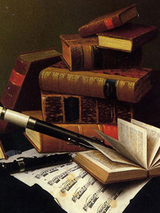 Ausschnitt: Music and Literature von William Michael Harnett (1887, Öl auf Leinwand) |